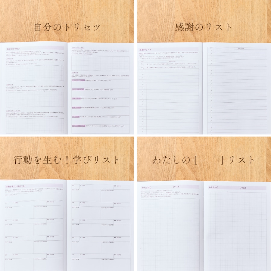 自分軸手帳には、自分軸を見つける8つのワークが収録されています。